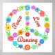 Partagez votre amour pour la danse et profitez de ce design rétro amusant avec une enseigne de paix faite de fleurs colorées et les mots - Peace Love Dancing. Bon cadeau pour un danseur.