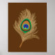Imprimer dans un dessin vectoriel d'une plume de paon, rehaussée et rendue dans un effet d'écrémage de côte doux - beige doré doux et plumes tan, avec rouille, bleu cobalt, et oeil vert émeraude, sur un arrière - plan chocolat