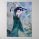 D'une peinture à l'huile originale 5x7 de Brenda Thour d'un portrait peahen. Un paon est un paon femelle. Dans de beaux teals et bleus avec un arrière - plan abstrait feuillu. Copyright par Brenda Thour 2012.