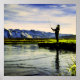 Pêche sur un lac de montagne lors d'une belle journée ensoleillée avec des montagnes enneigées dans l'arrière - plan. La nature est belle. Vous pouvez customiser et personnaliser ceci en ajoutant vos propres paroles de texte, de pome ou de chanson dans le ciel. Modifiez la taille, la couleur et le style de la police.