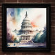 Peinture aquarelle de l'immeuble Capitol Le ratio d'aspect est de 1:1. Il a été conçu pour être imprimé sous la forme de 20 po x 20 po x 16 po x 12 po x 12 po