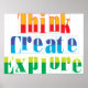 Pensez, créez et explorez est un grand rappel que vous pouvez faire ces choses pour élargir vos horizons. Ce sera un grand ajout à la salle de classe, au campus ou au bureau. Les éducateurs amènent vos élèves à réfléchir, à créer et à explorer les possibilités! Les gestionnaires mettent ça dans la salle de travail pour inspirer vos employés.