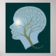 Silhouette frappante d'une tête humaine, avec un arbre branché "système nerveux", et lune brillante "oeil", et légende "Penser vert". T-shirts, sweat - shirts à capuche, cartes, cadeaux.