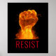 L'art mural sur le thème de la justice sociale présente un grand poing de feu et des flammes avec un texte "RESISTE" personnalisable en caractères rouges modernes sur arrière - plan noir.