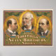 Affiche de cirque vintage Adam Forepaugh & Sells Brothers montrant des portraits de buste de Peter Sells, Adam Forepaugh, et Lewis Sells, vers 1900.
