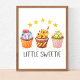 "Little Sweetie" Cite La Typographie. Des cupcakes aquarellés de couleurs vives. Sexe neutre pour les chambres pour garçons ou filles.