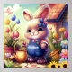C'est une affiche adorable pour la chambre d'une petite fille ou la crèche avec un mignon lapin dans son jardin avec le nom sur le dungaree. Cela ferait un grand cadeau personnalisé comme le nom sur le dungaree est personnalisable. Offrez-le en cadeau de Pâques, d'anniversaire, de Noël ou de baby shower.