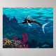 Vista submarina de un pez espada rondando en las profundidades. Ilustración numérique.