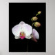 Weiße und rosa Phalaenopsis Orchideen (möglicherweise die Hybride des Ever Spring Angel), Blüten und Knospen auf schwarzem Hintergrund. Phalaenopsis ist eine Gattung von Orchideen, die aus Asien und Australien stammen.