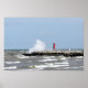 journée ventée faisant souffler d'énormes vagues au phare de Sheboygan, Wisconsin
