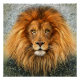 Gros plan du visage d'un lion avec différentes étoiles colorées comme arrière - plan. Image photographique de peinture de l'art du lion.