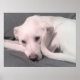 Poster Photo d'un chien blanc avec queue courbée contre v