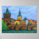 Peinture stylisée et vibrante de la belle Prague et du Pont Charles le long de la Vltava à Prague, République tchèque par l'artiste populaire Lisa Lorenz.