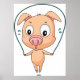 Un cochon sautant au-dessus d'une corde à sauter en s'amusant. Ce design semble vraiment efficace sur cette affiche