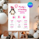 Poster Pink Penguin First Birthday Milestone