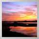 Une mer calme reflète parfaitement les nuages tourbillonnants aux couleurs vives au coucher du soleil.
