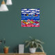 Poster Plage Parasols Bateaux à voile Fun Art folklorique