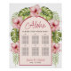 Un tableau floral tropical, approprié pour un mariage hawaïen / luau. Le texte est à l'intérieur d'une arche rose avec des bordures rouge bordeaux. Autour de l'arche, il y a des fleurs et des feuilles tropicales - feuilles de monstera et de palmier et hibiscus rose - peintes à l'aquarelle. Le titre "Aloha" et les noms sont écrits en écriture manuscrite, dans un rouge bordeaux de couleur similaire au centre des fleurs d'hibiscus, le reste du texte est noir (tout en majuscules). Les feuilles et fleurs tropicales sont à l'aquarelle, peintes par laomao_art de Pixabay, gratuites pour une utilisation commerciale.
