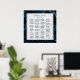 Élégant tableau de mariage à cadre en marbre blanc et bleu marine avec reflets argentés. Pour une personnalisation avancée de ce design, veuillez cliquer sur le lien "Personnaliser davantage". Des articles assortis sont également disponibles.