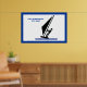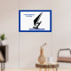 Planche à voile noire à bord affiche de planche à voile bleue affichant un pictogramme minimaliste d'une planche à voile en silhouette noire et votre texte sur un arrière - plan blanc avec bordure bleue.