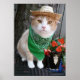 Bubba kitty dans un bandana vert et casquette de jardin, devant un arbre, et par un pot de fleur kitty avec quelques impatiens. Vous pouvez ajouter du texte. Cette affiche peut être amusante pour un enseignant ou toute personne qui aime les chats. J'espère que vous en achetez un. Bubba veut plus de travail. com