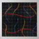 Retro 1980's primaire color paint stroker motif sur un arrière - plan géométrique pointillé noir et blanc.