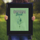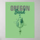 Poster d'art moderne avec Oregon en couleur gris avec Bend dans une police d'écriture aqua moderne avec arbres géométriques et planètes logo graphique sur arrière - plan vert