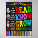 PLUS VOUS LISEZ PLUS VOUS CONNAISSEZ BIBLIOTHÈQUE DE SALLE DE COURS POSTER Beau, belle et motivante affiche pour décorer n'importe quelle salle de classe ou bibliothèque d'école! Le design présente des couleurs vives et attrayantes et des graphiques contre un arrière - plan de tableau de bord faux. Encouragez les élèves à lire, à connaître, à grandir et à aller avec cette affiche de lecture amusante et inspirante!