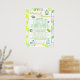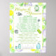 Une affiche présentant une variété de poids et de mesures avec des poids secs et des conversions de liquides avec une illustration d'une mesure de pouce. Une échelle vintage, cuillères et tasses de métal avec des jarres en verre bleu accentuent l'affiche avec une bordure d'oignons frais, concombres, citrons et herbes illustrés d'aquarelle. Bel pour le décor de cuisine et un grand cadeau pour tous ceux qui aiment la cuisine.
