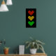 Un Stoplight dessiné avec des "lumières" en forme de coeur, entièrement en points.