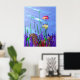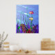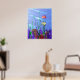 Poster avec mon oeuvre originale d'un poisson-ange jaune et rose et d'un poisson-ange bleu et jaune, nageant dans des directions opposées.