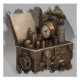 Un design d'un coffre au trésor avec des engrenages, un style ancien et une carte au trésor combine des éléments de nostalgie, d'aventure et de mystère. Charme ancien et nostalgique. Le coffre au trésor est décoré d'une variété d'engrenages placés le long de son cadre ou sur le couvercle. Ces engrenages pourraient être faits de laiton ou de bronze, ajoutant une touche de mécanique et de mystère à la conception. Les engrenages pourraient être reliés à des trous de clés ou des leviers qui permettent au spectateur de tourner ou de les déplacer pour révéler le secret du coffre au trésor. Il pourrait y avoir une carte détaillée du trésor sur le couvercle du coffre du trésor, montrant le chemin vers un trésor imaginaire ou réel. La carte peut être dessinée sur un parchemin ancien ou d'autres matériaux d'apparence antique, et elle peut être décorée à la main avec des encres et des illustrations fanées. La carte ajoute non seulement une touche d'aventure et de mystère au design, mais aussi vous invitations à ouvrir le coffre au trésor et découvrir le secret caché à l'intérieur. Dans l'ensemble, ce design incarne la fascination pour les temps passés, pour l'aventure et la découverte et éveille la curiosité pour l'inconnu. C'est un design visuellement attrayant et inspirant qui stimule l'imagination et raconte des histoires de trésors et de secrets cachés.