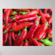 Une pile de piment rouge vif cueilli à l'air chaud se répartit sur cette affiche, prête à être séchée, mariné ou bonne cuisine !