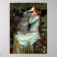 Ophelia (assise) de John W. Waterhouse (1898), adaptée pour inclure une miniature en argent ou un jouet Poodle. Waterhouse a basé ce tableau sur l'Ophélie de Shakespeare.