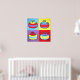 A playful celebration of color, texture, and repetition, this design presents a quartet of stylized curling stones rendered in a bold, painterly pop-art style. Each stone sits within its own vibrant color field, swapping hues and combinations to create a rhythmic visual variation that feels both cohesive and dynamic. The thick, hand-drawn outlines and visible brush-like textures give the forms a tactile, almost folk-art warmth, while the simplified shapes and high-contrast palette lend a modern, graphic punch. The result is a lively, whimsical composition that captures the spirit of curling through a lens of cheerful abstraction and expressive color.