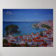 D'une peinture originale en acrylique sur toile (taille 102cm x 76cm) d'Yvonne Ayoub, montrant le vieux port de Skiathos, l'îlot Bourtzi et les toits de tuiles rouges de la Vieille Ville