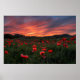 Un coucher de soleil extraordinaire montrant le ciel orange/rouge avec un champ plein de pavots par le photographe Dave Fletcher