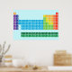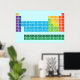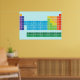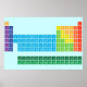 Poster avec tableau périodique des éléments, avec chaque groupe d'éléments marqué en couleurs arc-en-ciel.