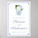 Des florales classiques bleues et blanches dans un vase en forme de pot à gingembre ornent ce design de panneau de bienvenue pour fête. Illustré ici pour une fête de fiançailles, mais tout le texte peut être personnalisé selon vos besoins.