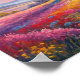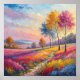Un tableau de paysage enchanteur qui déborde de couleurs joyeuses du printemps. Les collines ondoyantes sont ornées d'une tapisserie de fleurs sauvages fleuris dans les tons fuchsia, lavande, or et cerulean. Un sentier doux serpente à travers la flore vibrante, menant l'oeil vers une ligne d'arbres gracieux avec feuillage peint dans des tons brillants de jaune, bleu et rose. Le ciel au-dessus est un spectacle de pastels doux, avec des éclats de nuages baignés par la chaleur de l'aube ou du crépuscule, créant une atmosphère sereine mais animée. Cette oeuvre capture l'essence d'un printemps onirique, invitant les spectateurs à s'immerger dans sa beauté et sa tranquillité.