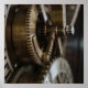 A focused macro image capturing the escape wheel and pallet, the most delicate and critical parts of the tower clock's regulation system. The shot highlights the sharp, precise teeth of the brass escape wheel interacting with the polished steel of the pallet (anchor), showing the "heartbeat" of the mechanism where energy is precisely released to mark time.