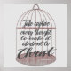 Cette conception comporte une cage d'oiseau texturée grunge avec une portion de 2 Corinthiens 10:5, qui dit : "Nous démolit les arguments et toute prétention qui se met contre la connaissance de Dieu, et nous prenons captifs chaque pensée pour le rendre obéissant au Christ. (NIV)" Le texte est présenté dans la belle police Arkana cursive dans une couleur gris foncé. La cage représente l'idée de quelque chose qui est "capturé". Il est dit que ce qui consomme vos pensées, contrôle votre vie et ce verset est un rappel que toutes nos pensées doivent être amenées à l'autorité du Christ, le dirigeant légitime de la vie d'un croyant.