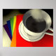Café sur un arc-en-ciel de serviettes.