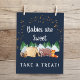 Un baby shower rustique et sucré porte une affiche avec une jolie illustration d'animaux des bois avec leur tente campant dans les montagnes et la forêt sous un ciel étoilé bleu foncé de la cravate, et "Babies are Sweet" dans un script blanc.