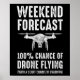 Prévision de fin de semaine - 100% de chance de vol de drone (avec un léger risque de crash). Ce drone pilote et accessoire hobbyiste amusant est un cadeau parfait pour les drones qui aiment les drones volants, les quadricoptères ou les drones. Super cadeau pour un pilote et un opérateur de drone commercial ! Si vous aimez voler et utiliser des drones comme un passe-temps, aimez la course de drones, ou aimez prendre de la vidéo avec votre drone ou quadcopter, alors cette conception est pour vous!