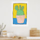 Cette affiche a une composition simple, dessinée à la main à l'aide de stylos et d'aquarelle, d'un cactus Prickly Pear dans un pot de fleurs. Le cactus est gras, avec trois lobes sur le dessus. L'arrière - plan est jaune et bleu, le pot est beige rose et le cactus est très vert et épicé, le tout contenu dans une mince bordure noire, avec un entourage blanc. C'est un exemple charmant d'art simple, naïf.