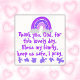 Monogrammé pour vous d'insérer votre propre prière si vous le choisissez, poster carré. Ce joli thème boho avec un arc-en-ciel violet et rose avec des nuages, et texte violet sur un arrière - plan blanc, états, Merci, Dieu, pour ce beau jour. Bénis soit ma famille, garde-nous en sécurité, je prie.