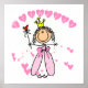 Un adorable bâton figure princesse design avec un bâton figuré dans une robe de bal rose portant une tiare dorée, tenant une baguette en forme de coeur rouge, entouré de nombreux coeurs roses qui lisent "Princesse" !
