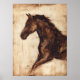 La beauté de ce cheval sombre est parfaitement capturée par deux couleurs simples : le marron et le beige et la netteté de l'encre utilisée dans ce tableau le rend encore plus réaliste. Ce dessin d'art contemporain représentant un profil d'étalon brun ajoutera du caractère à tout salon, salle à manger ou chambre.