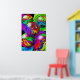 Cette affiche psychédélique présente des tourbillons et des boules multicolores fondus.